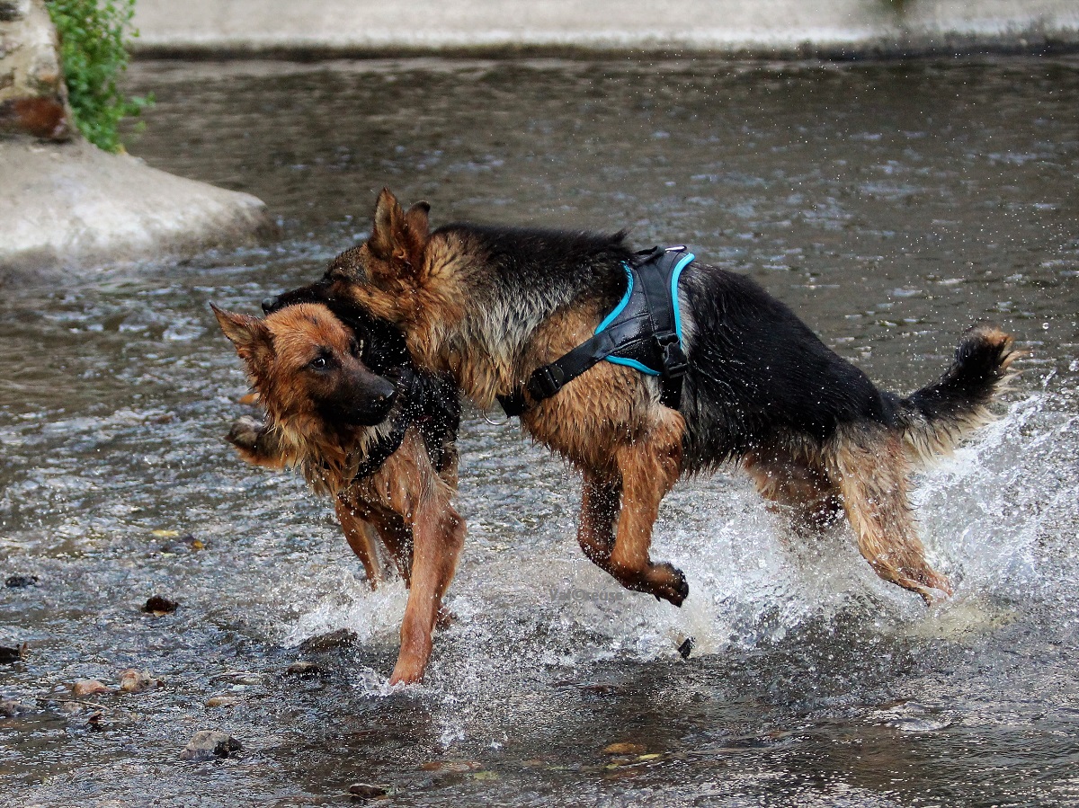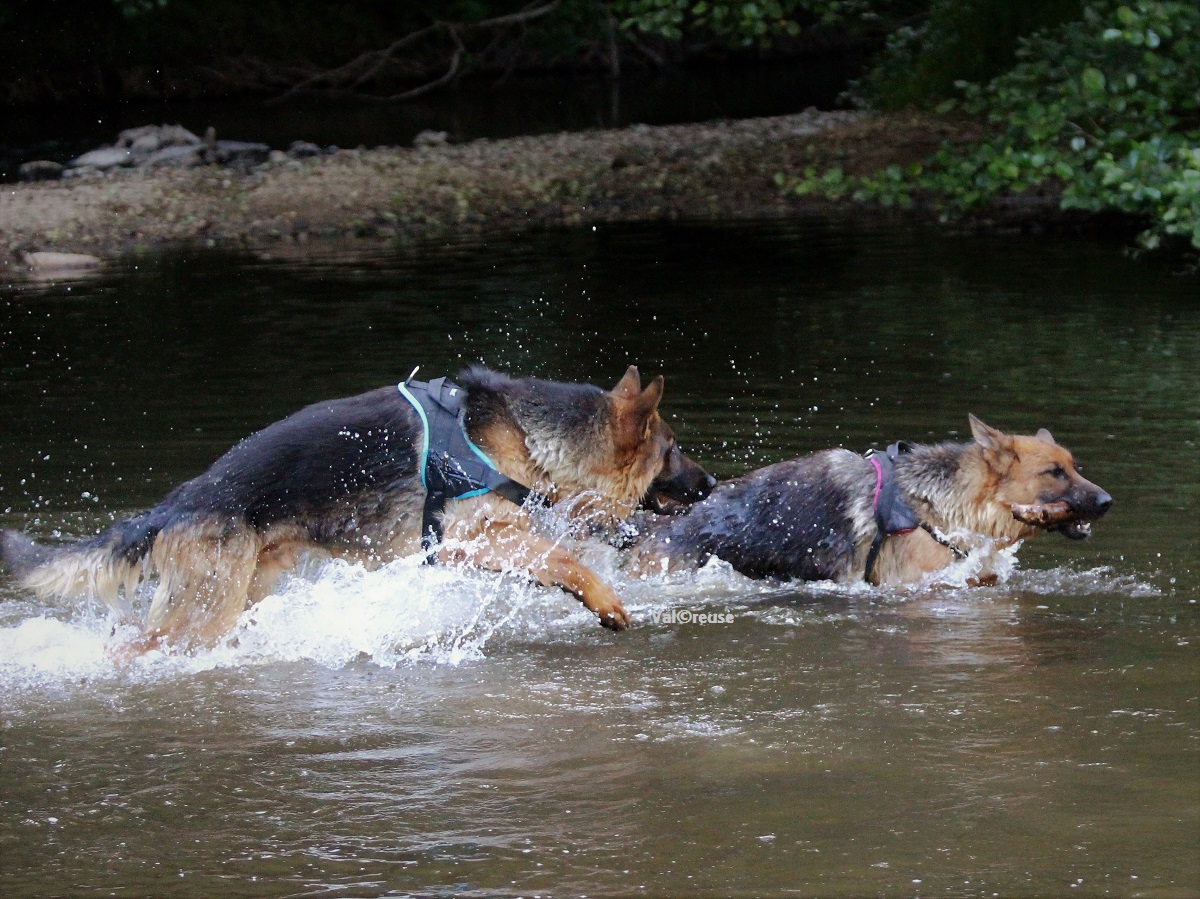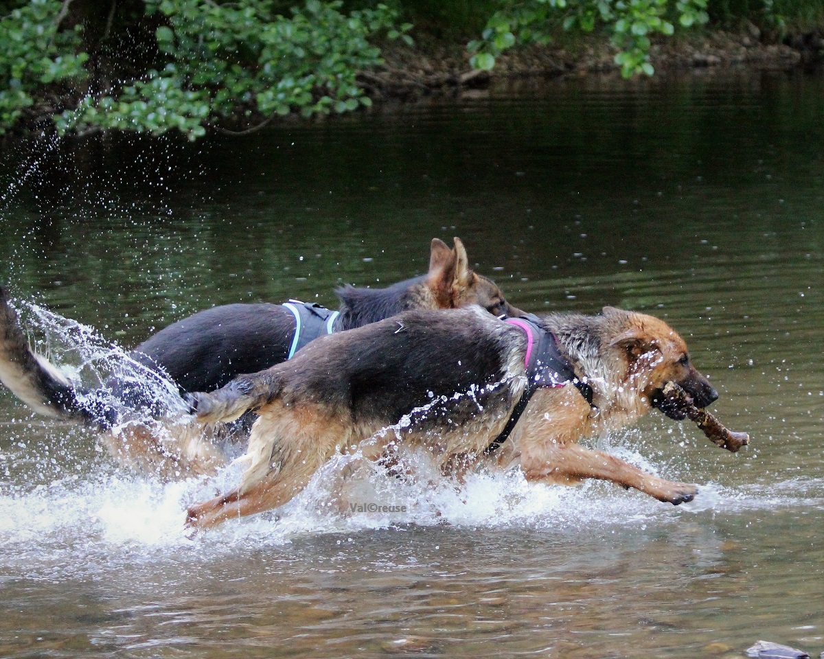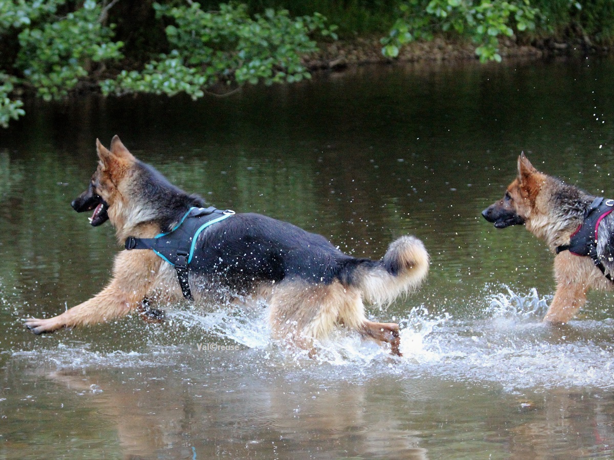 On progresse à vitesse lente mais on progresse. La réelle confiance que Matcho semble nous témoigner nous permet d’envisager désormais d’aller balader dans des lieux lui étant inconnus au risque d’y rencontrer des promeneurs. Matcho découvre l’eau et y prend beaucoup de plaisir ; c’est l’occasion pour nous d’évaluer un peu sa gestion des frustrations, un point qu’il va falloir travailler.
