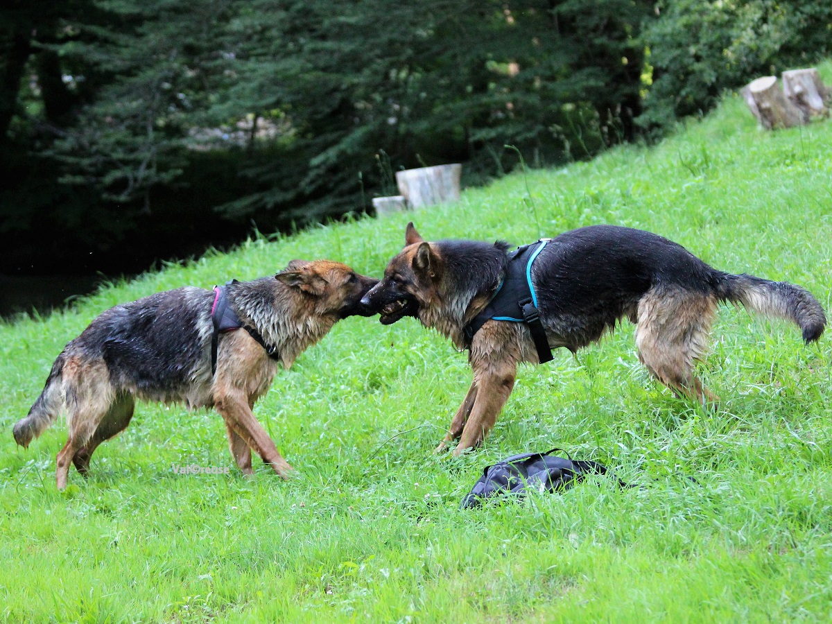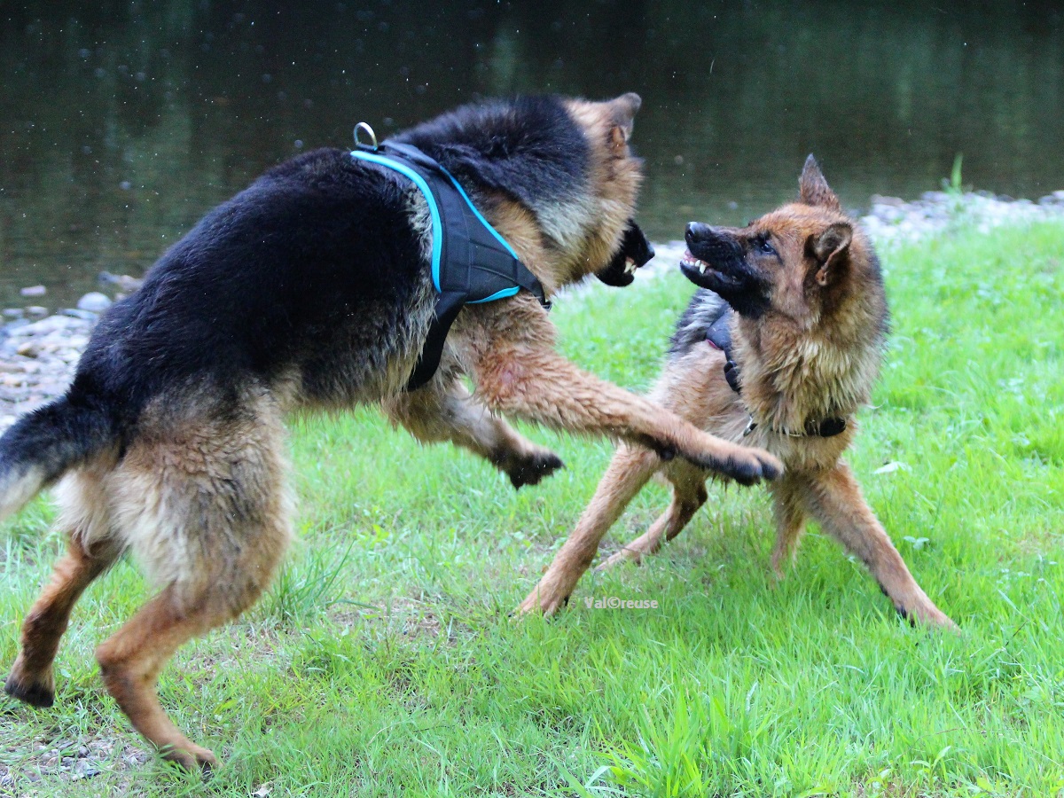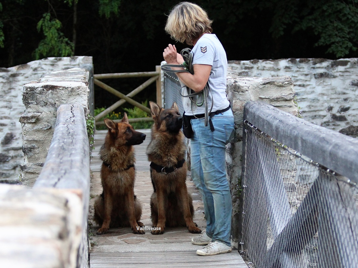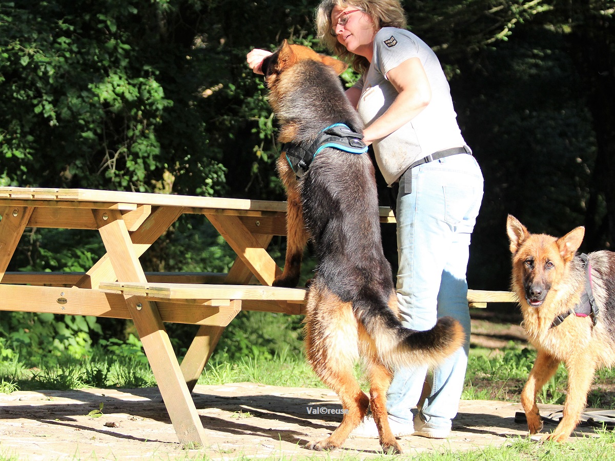 Après avoir évalué à peu près ses habitudes de réactions en situation de stress (évidemment l’agression de distancement) et avoir jaugé ce qui le mettait en état de stress (mauvaise humeur de l’humain, ton autoritaire, port du collier, proximité d’autres chiens …) nous avons décidé d’opter pour la patience et la construction d’une véritable routine. Ses seules activités se sont donc limitées à aller balader en liberté dans la campagne avoisinante en compagnie de sa sœur.