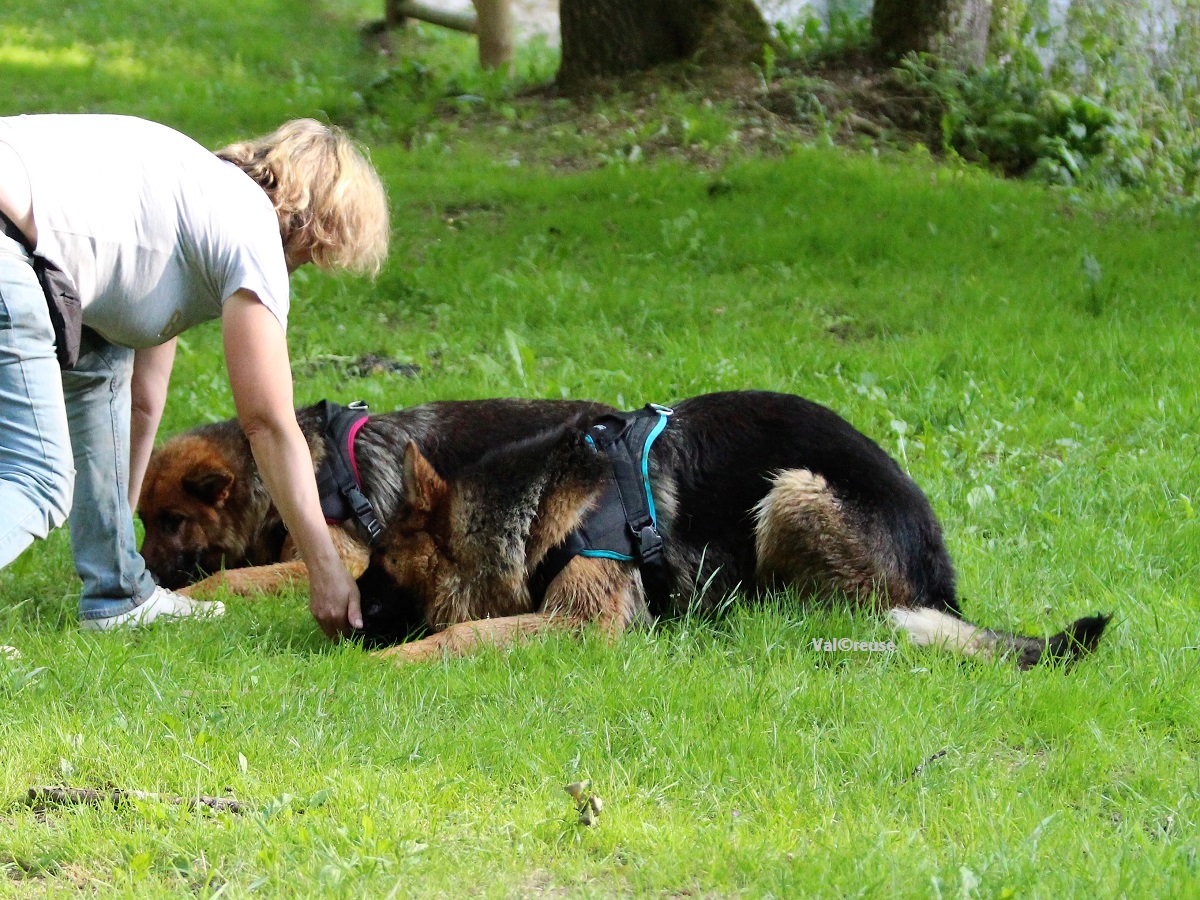 2 ans quasiment auront été nécessaires pour réparer des dégâts causés en seulement 3 mois. La réactivité sur les enfants se limite désormais aux enfants turbulents et hurlants. Plus aucune trace de méfiance vis à vis des humains tant qu’ils ont un comportement pacifique à son égard. Ne subsistent que quelques appréhensions des manipulations mais à peine plus que n’importe quel autre chien non familiarisé. Tout ceci nous a convaincu de le présenter à l’examen de confirmation qu’il a réussi avec brio. C’est une grande victoire et une revanche il faut l’avouer.