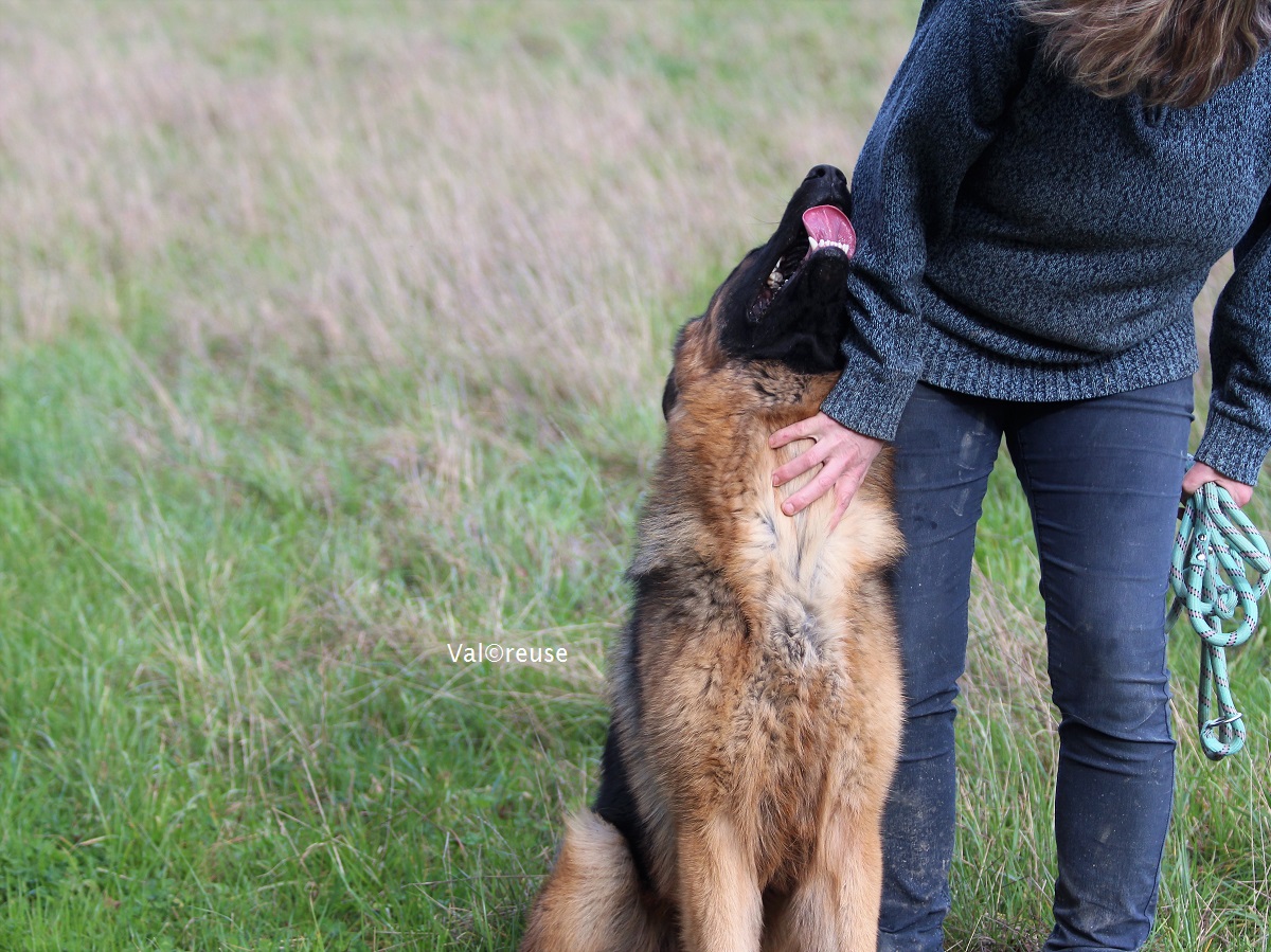 En 5 mois et malgré toute la douceur dont nous faisons preuve, la moindre élévation de la voix (jamais dirigée contre lui) le remet en état de stress :-/ Par contre il montre une relative confiance en nous lors des manipulations et apprécie énormément notre proximité. A ce stade, on peut considérer que c’est une victoire et va surtout nous permettre d’envisager d’élargir nos horizons de promenade puisqu’il est très à l’écoute de la moindre de nos demandes (rappel excellent).