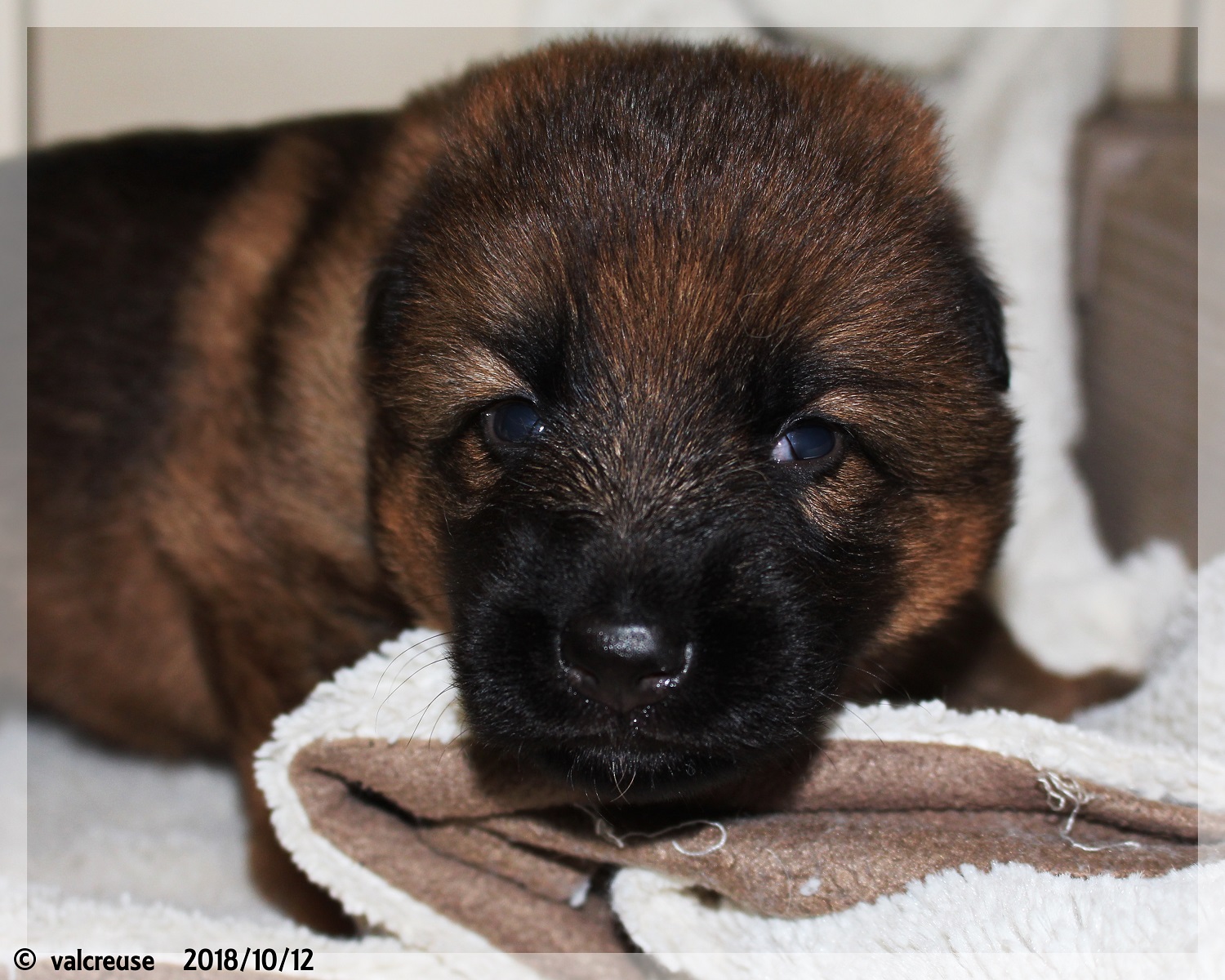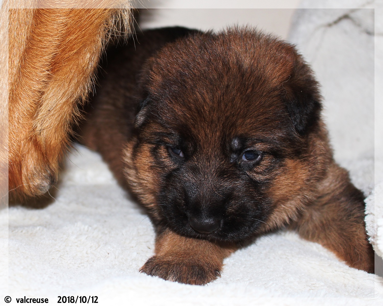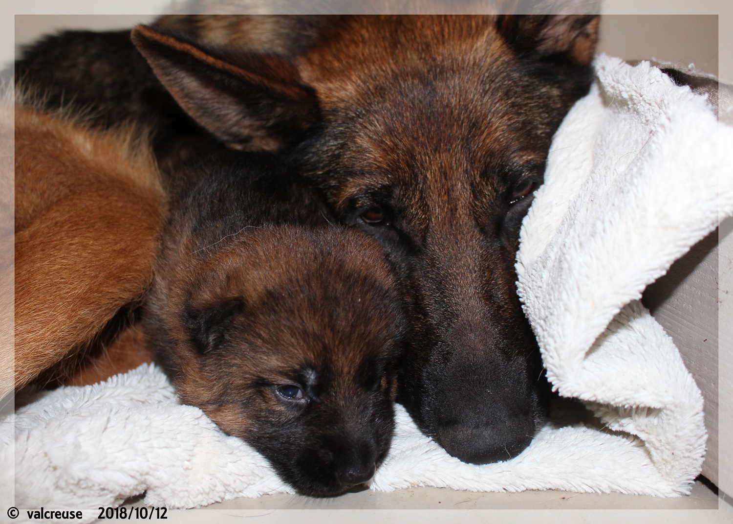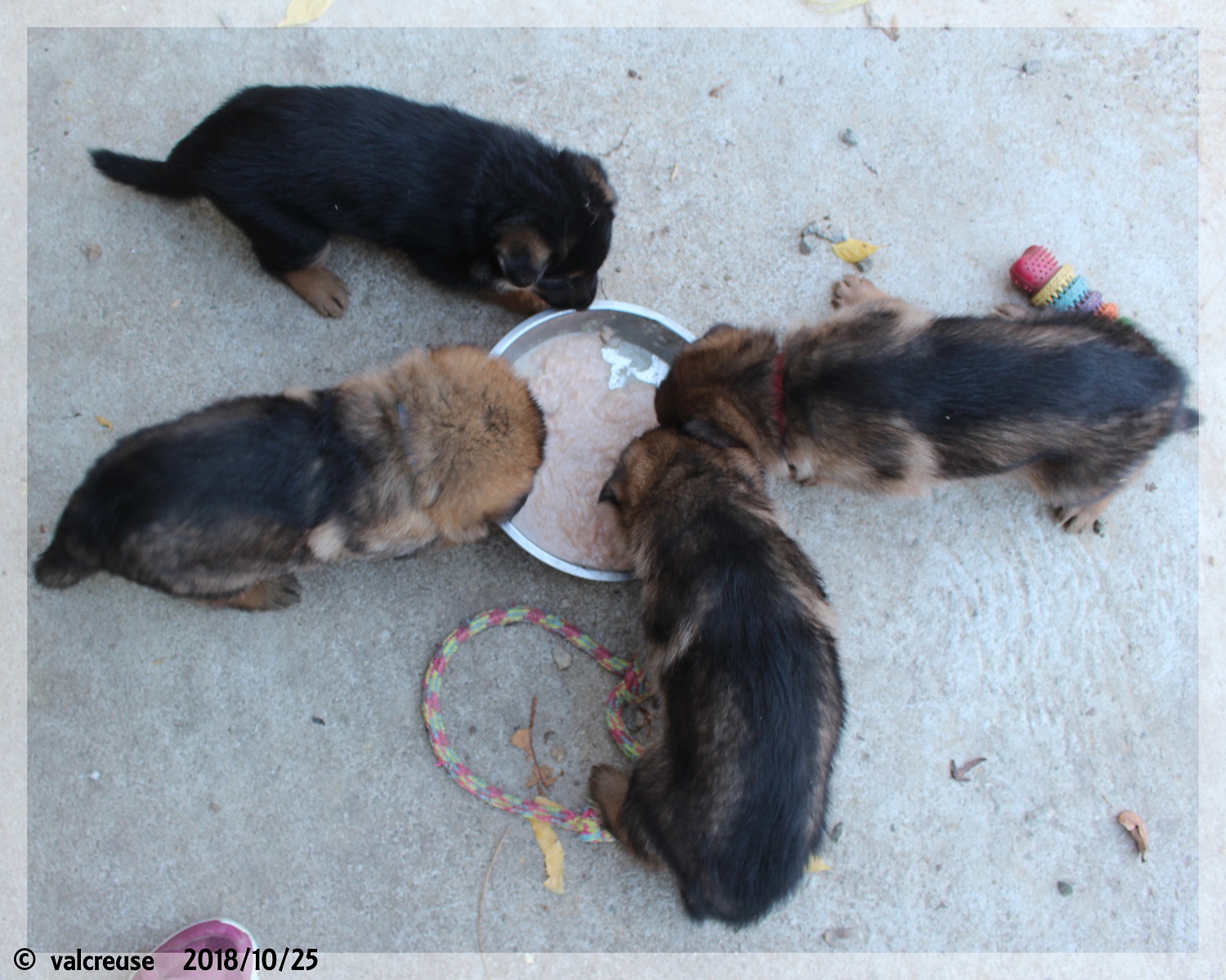 Nés le 25/09/2018 : 2 mâles fauve charbonné comme maman et 2 femelles dont une noir et feu comme papa et une fauve charbonnée comme maman de Mona-Lisa et Hakan de la Plaine des Epis d'Or.