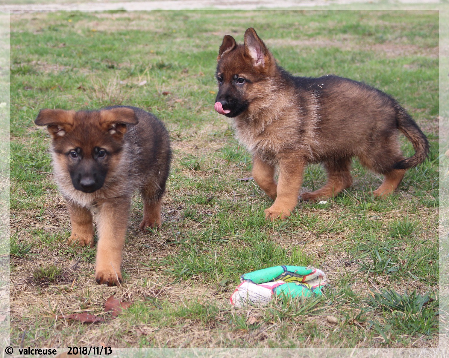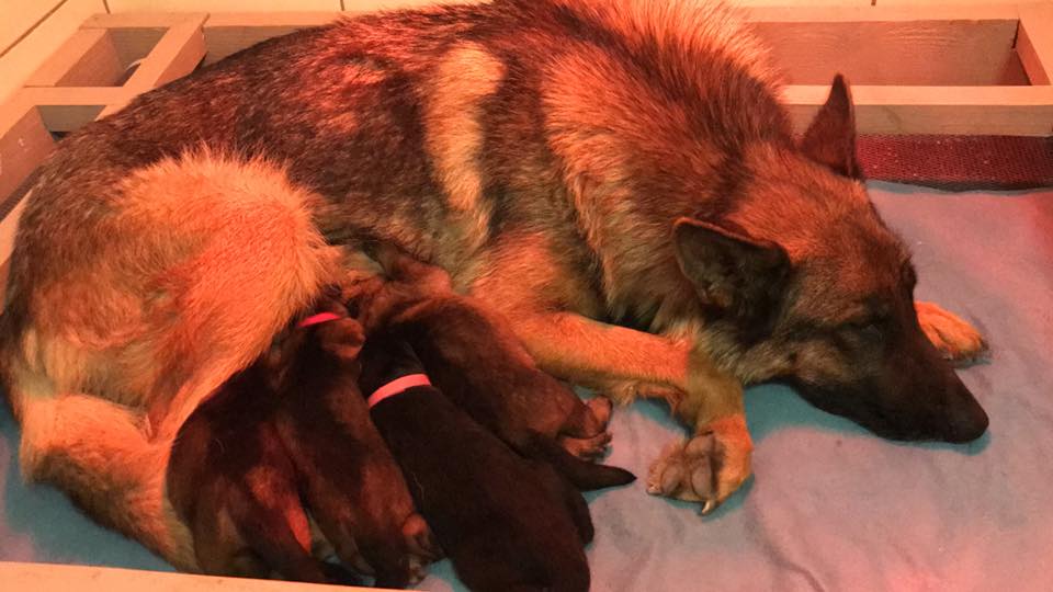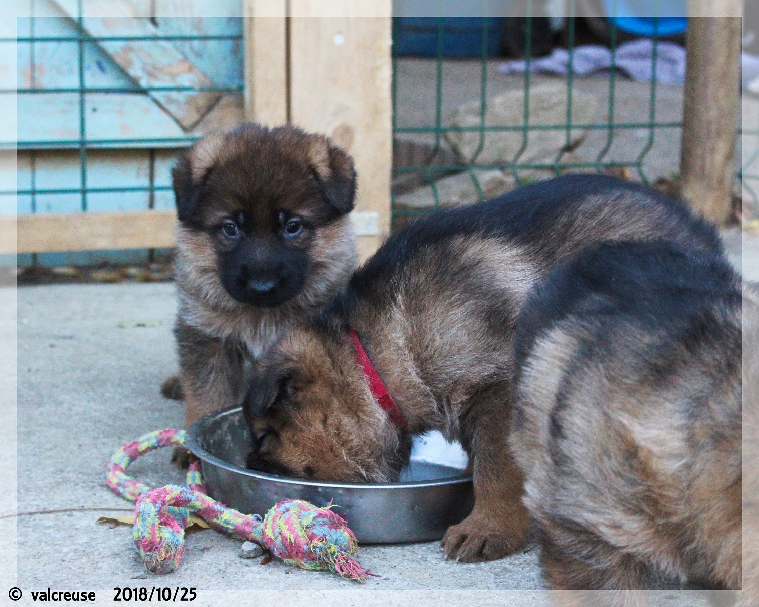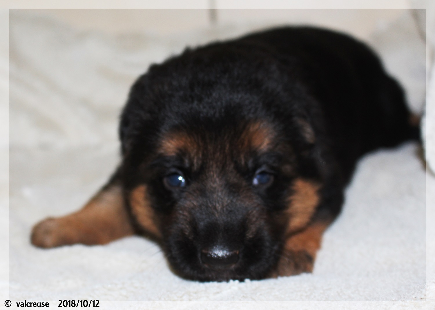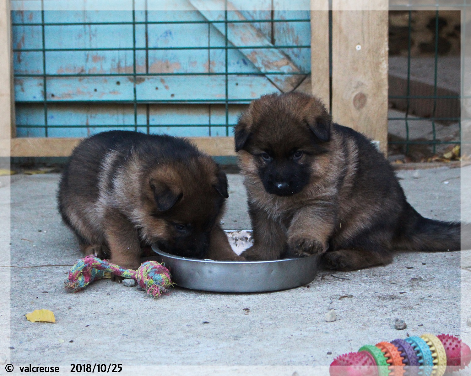 Nés le 25/09/2018 : 2 mâles fauve charbonné comme maman et 2 femelles dont une noir et feu comme papa et une fauve charbonnée comme maman de Mona-Lisa et Hakan de la Plaine des Epis d'Or.