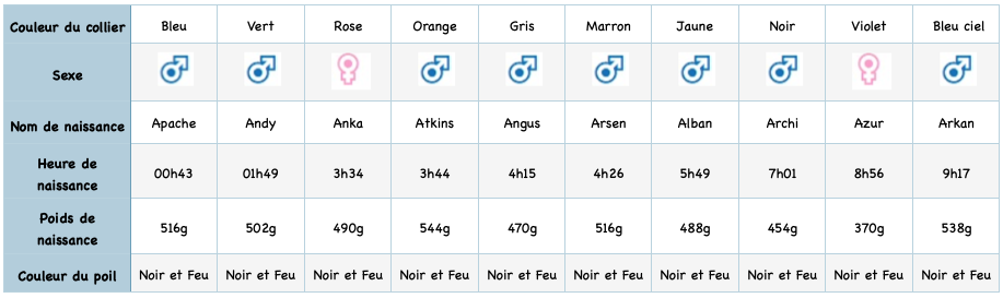 Le prix de nos chiots est invariable qu’il s’agisse d’un mâle ou d’une femelle, d’un chiot à poils courts ou à poils longs, de couleur noir et feu ou fauve charbonné. Il n’est pas non plus marchandable. Il est inutile de nous contacter si vous comptez discuter le prix. Pour en savoir plus sur le prix et à quoi il correspond, merci de lire cette page :