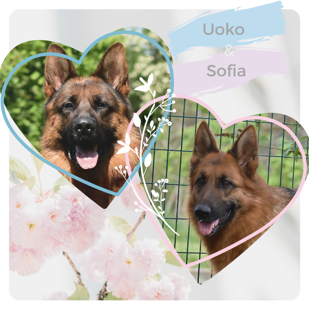 Uoko et Sofia présentant pas de « défauts » nécessitant de prendre des précautions particulières lors de l’accouplement, ils se complètent naturellement. Tous deux sont dans la taille standard. Nous nous attendons à de futurs chiens assez puissant tout de même (les ascendants de chacun le sont). Coté couleurs, nous nous attendons à des bébés colorés sans être excessivement charbonnés.